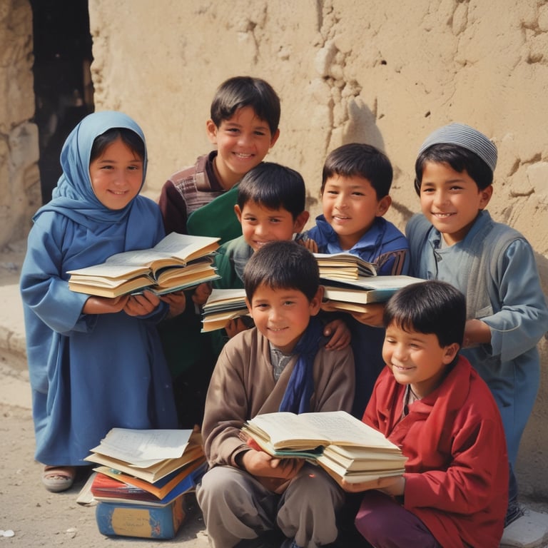 *Die Bilder sind AI-generiert, da wir erst im März 2026 mit dem Verkauf gestartet haben. Hier folgen bald Bilder von echten Kindern, denen wir Bücher bald Bücher überreichen können. Helft mit dabei unser Ziel zu erreichen.